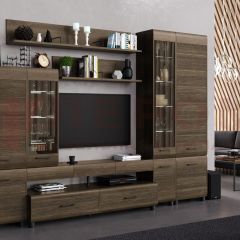 Напольная тумба под телевизор с двумя выдвижными ящиками и четырьмя нишами под аппаратуру. Размеры ниш и ящиков: 600х350хh140 мм.
