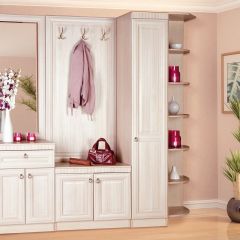 Серия включает все необходимые предметы мебели для прихожей: 1-, 2- дверные и угловой шкафы для одежды, тумба с панелью с крючками и тумба с зеркалом.