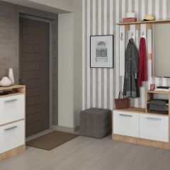 Серия включает все необходимые предметы мебели для прихожей: 1-, 2- дверные и угловой шкафы для одежды, тумба с панелью с крючками и тумба с зеркалом.