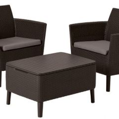 Элегантное дополнение к любому жилому пространству на открытом воздухе. Комплект Салемо включает два стула и один стол для хранения, все они сделаны из прочного, всепогодного пластика, которая может похвастаться стильной плетеной текстурой и гладкой фактурной столешницей. Кресла оснащены мягкими подушками, которые помогут вам расслабиться стильно и с полным комфортом. Набор идеально подходит для компактных помещений, легкий и простой в сборке.
