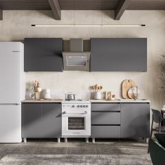 Лучше выбирать навесные модули без декора, филенок и фрезеровки – неровные поверхности быстро загрязняются и их сложно содержать в порядке.